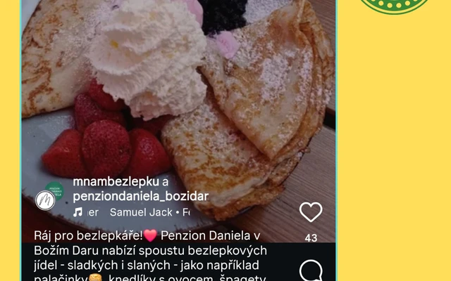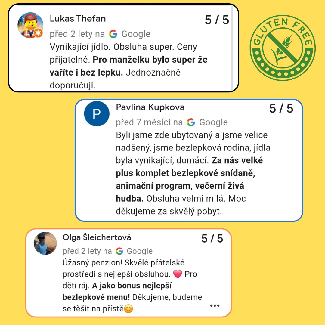 Pro naše ubytované hosty máme samozřejmě v nabídce i bezlepkové snídaně, abyste mohli svůj den začít s úsměvem. A nově také bezlepkové obědy a večeře v rámci penze.