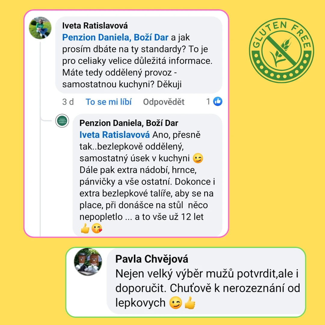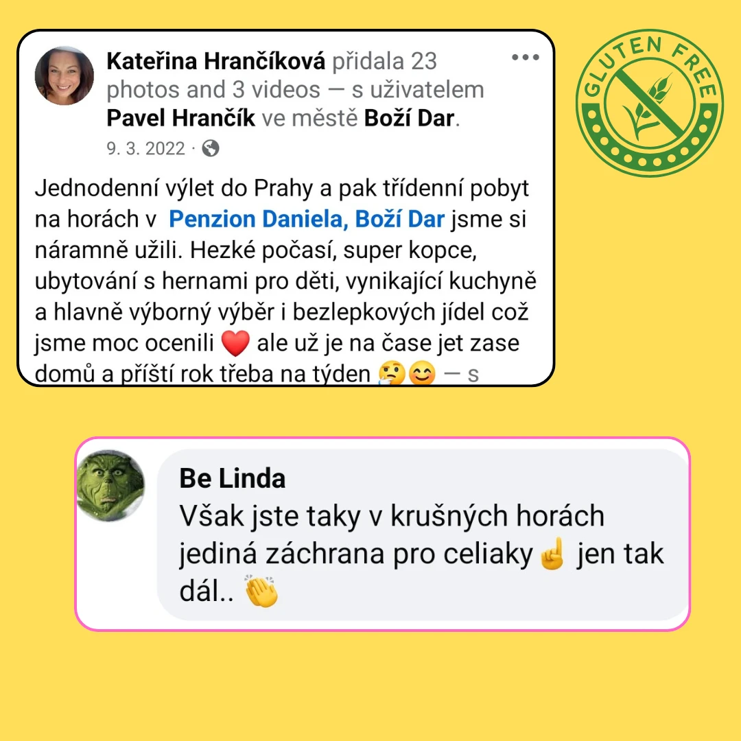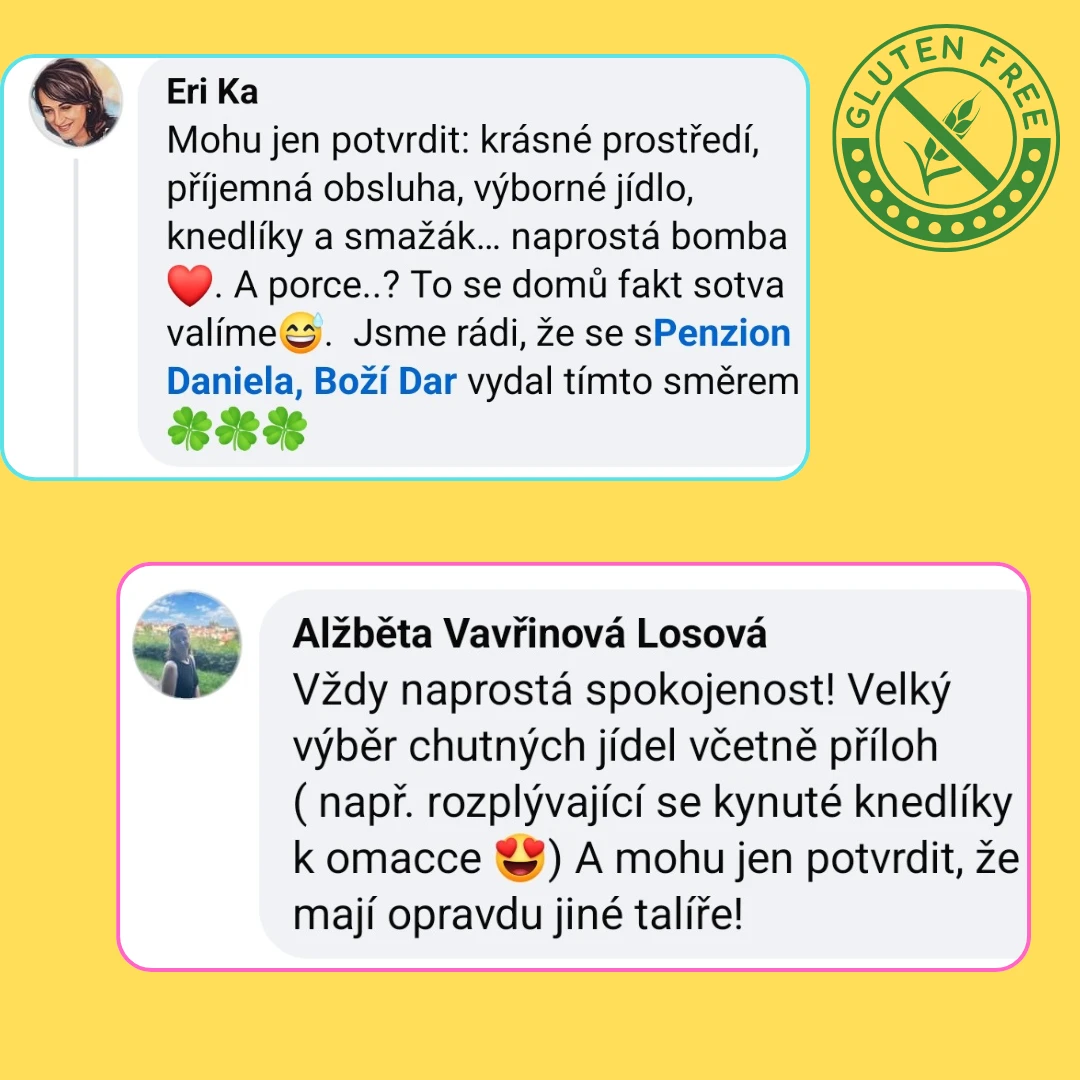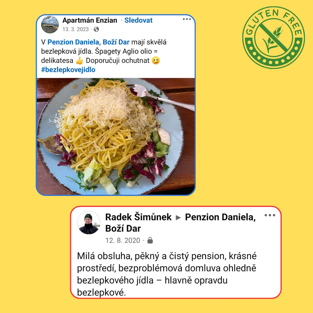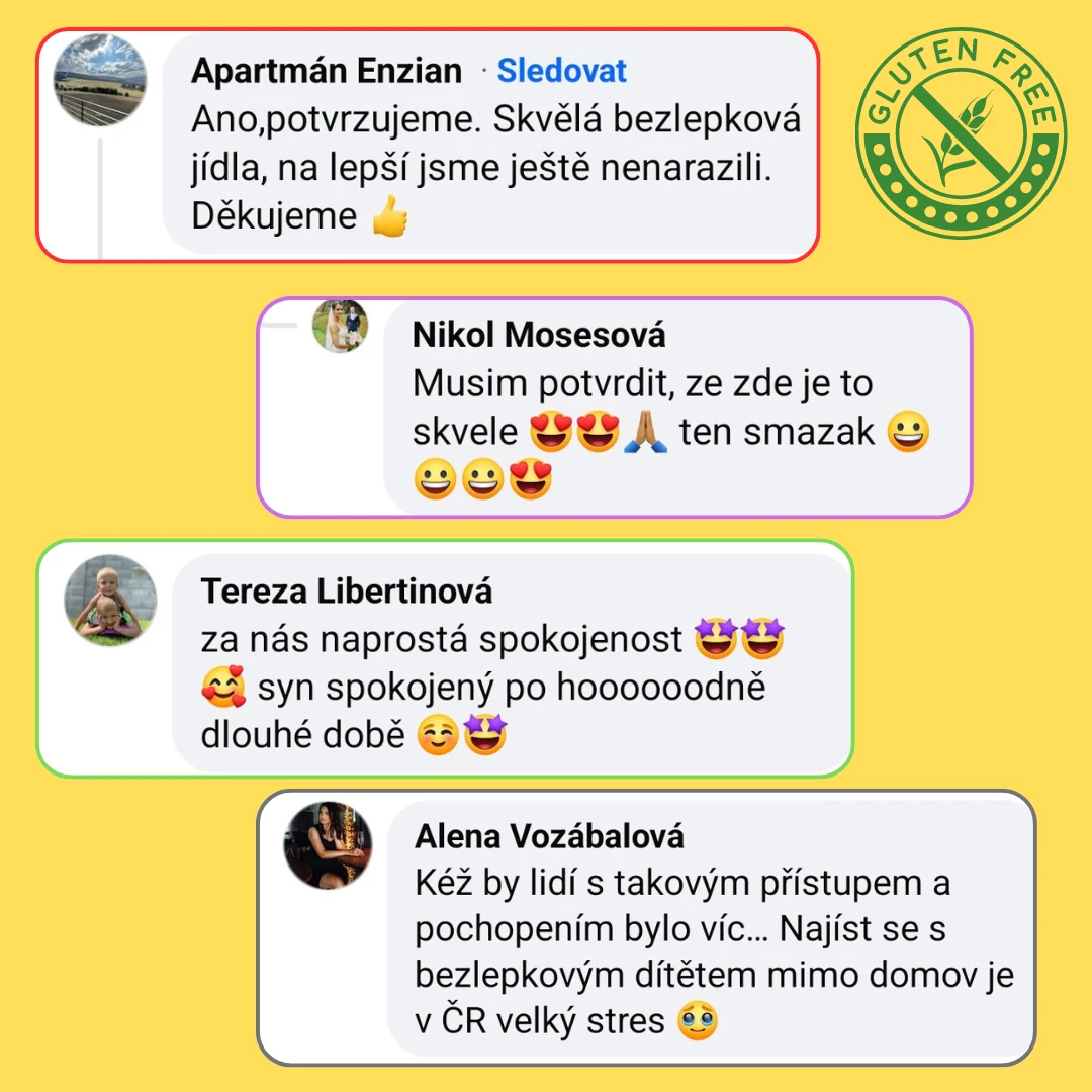 Přijďte ochutnat a zjistíte, proč se k nám bezlepkoví hosté (a ne jen oni) tak rádi vracejí. Jsme hrdí na to, že nabízíme jedinečný bezlepkový zážitek plný chutí v srdci Krušných hor.