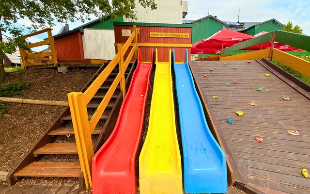 Představujeme vám naši nádhernou venkovní terasu, která je dokonalým místem pro rodinnou zábavu a relaxaci. Tato prostorná oáza nabízí širokou škálu atrakcí, které jsou ideální pro malé i velké návštěvníky. Děti mohou strávit hodiny na našich skluzavkách a houpačkách, které přinášejí radost a smích každému, kdo je vyzkouší.